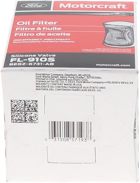Motorcraft Oil Filter FL-910S is a premium replacement part engineered for Ford and Lincoln vehicles. Tested to meet Ford original equipment standards, it helps protect the engine by filtering harmful contaminants from the oil system. A built-in pressure-relief valve supports proper oil flow during cold starts, while the durable steel construction, advanced filter media, and silicone anti-drainback valve ensure reliable, long-lasting performance.